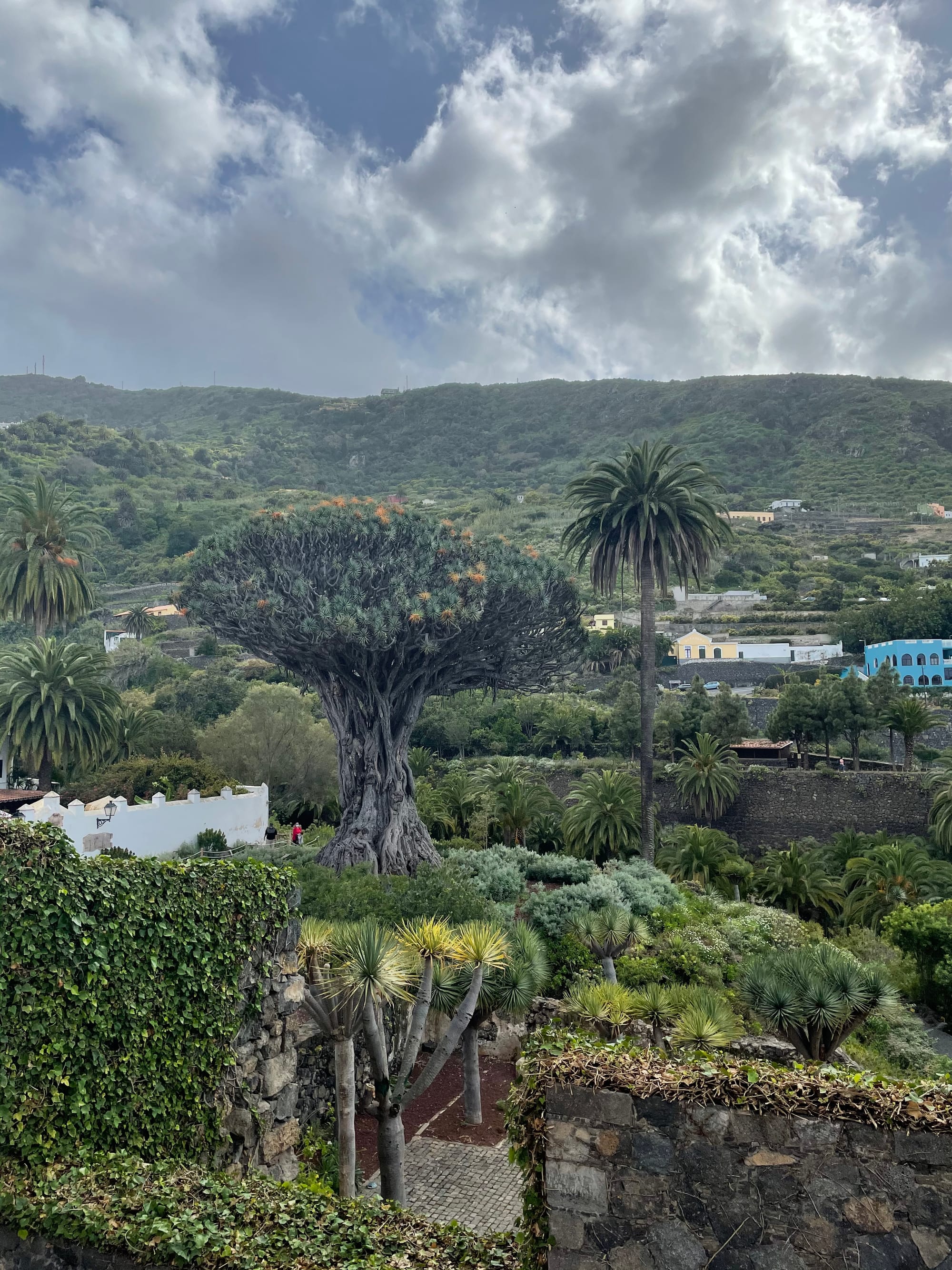 Rekomenduoju pasistatyti automobilį parking del Drago ir pėstute nueiti į bažnyčios kiemelį ir apžvalgos aikštelę, iš kurios atsiveria nuostabus vaizdas į drakono medį bei žalius, vešliai apaugusius kalnus. Jei turite laiko, visada galite užsukti į drugelių parką (daugiau inforamcijos čia) arba bananų namus - muziejų, kuriame galėsite net paragauti bananų vyno, daugiau info čia. Juk Kanarai - platanų/bananų tėvynė!